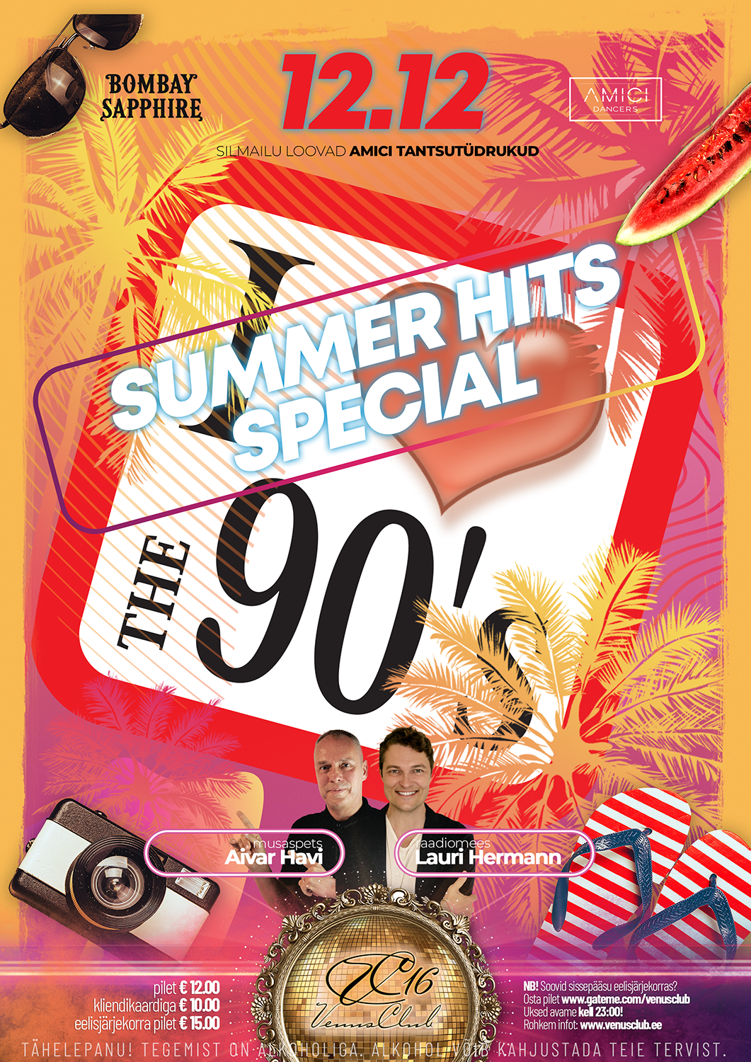 90´ndad tulevad taas.Nostalgiliselt suvist tantsumuusikat mängivad DJ Lauri Hermann & DJ Aivar Havi.Pidulisi kostitab Bombay Sapphire ja silmailu loovad Amici