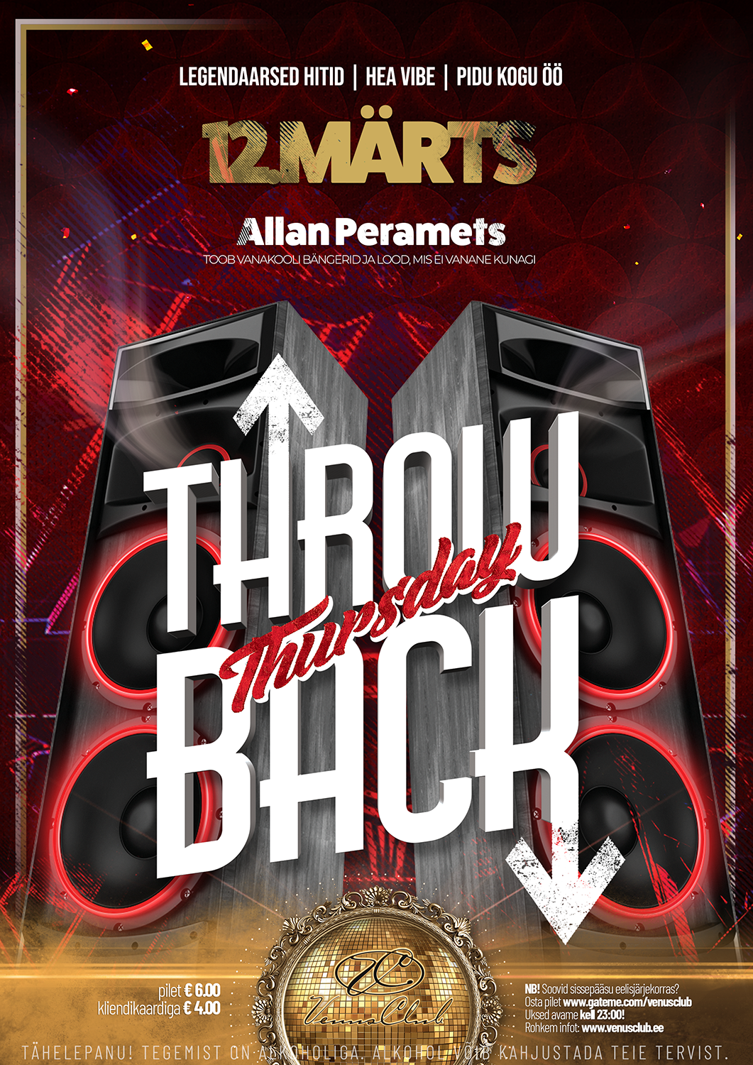 Reedel keerame Venuse retrolainele!Nostalgiline klubiõhtu kus parimat 90ndate tantsumuusikat mängivad DJ Sven Arusoo ja erikülalisena raadiomees DJ Rauno Märks.Showbaariletil on